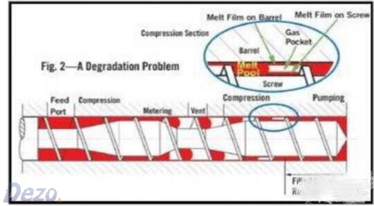 螺桿組合不合理戒轉速低,剪切不夠,物料熔化不好;