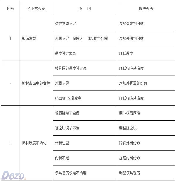 1、板面發(fā)黃 。擠出溫度過高或者穩(wěn)定性不足,解決辦法,降低加工溫度,如果不見好轉(zhuǎn)可調(diào)整配方,適當(dāng)增加穩(wěn)定劑和潤滑劑,可逐一改變,容易很快找出問題所在,最快的速度解決問題。