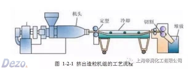 PVC樹脂開包檢驗→過篩→配方→高速混合→冷卻混合→擠出機擠出→切;驍D條冷卻→切粒。