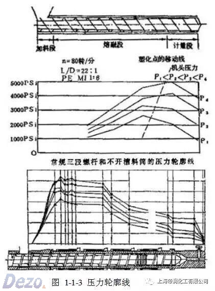 下面討論擠出過程中溫度、壓力以及擠出過程中的物態(tài)變化。