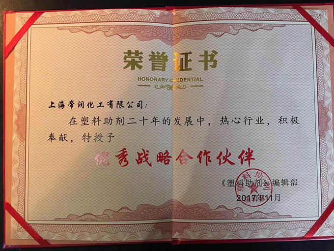 上海帝潤化工有限公司榮獲《優(yōu)秀戰(zhàn)略合作伙伴》獎項