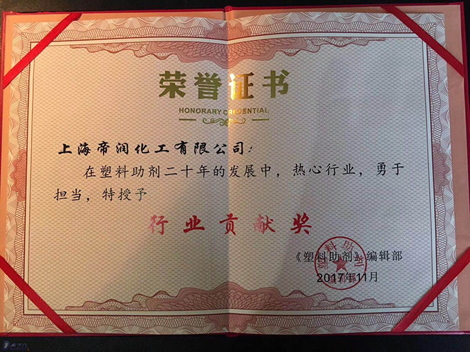 上海帝潤化工有限公司榮獲《行業(yè)貢獻獎》獎項