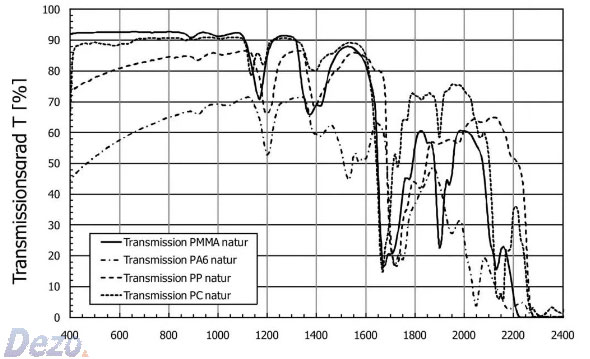 全光譜穿透率檢測(cè)PMMA, PA6, PP以及PC的光譜穿透率,2mm厚
