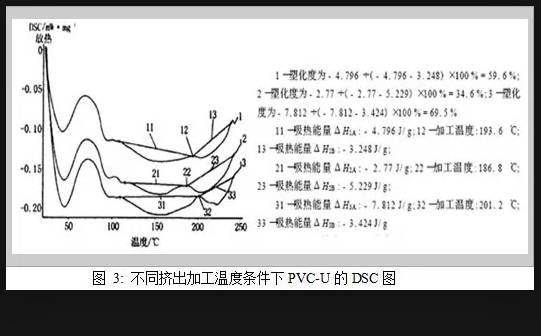 3、因此,采用DSC法測試PVC-U異型材的塑化度,并使其控制在60%-70%比例時的PVC-U異型材具有最佳的力學(xué)性能。用DSC方法分析PVC-U物料熔融過程中微晶的變化及吸熱能量情況,并計算其塑化度已成為一種方便、準確的方法。